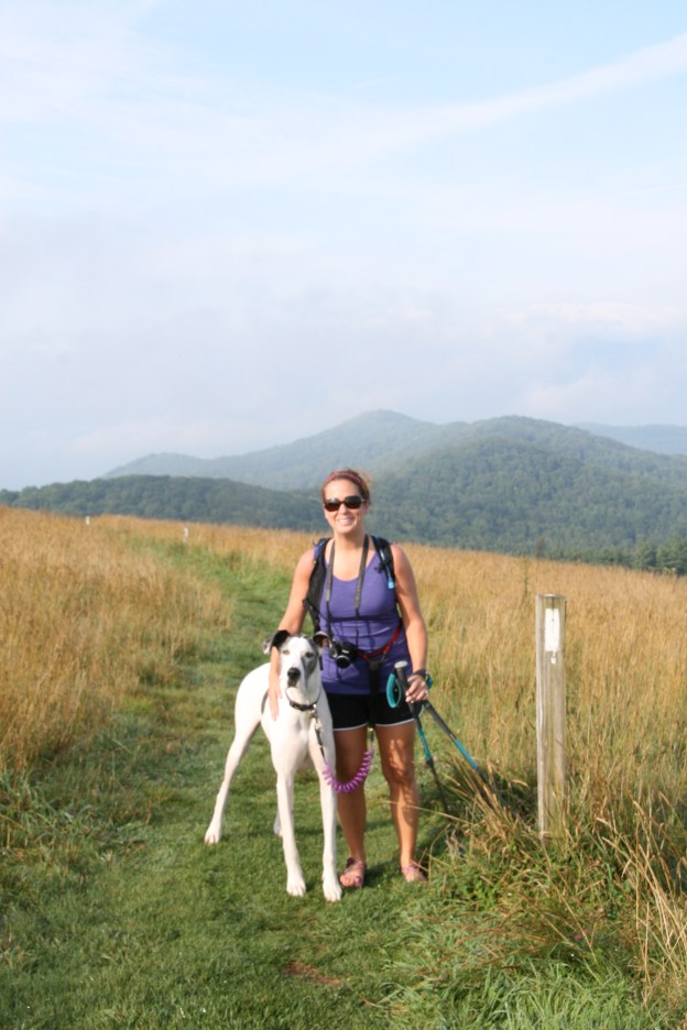 The Dane was well admired today. The Max Patch Trail is well traveled despite being down a long dirt road. Dogs were prevalent. Pisgah allows dogs and the Max Patch is a wide open mountain top. They say you can see Mount Mitchell and certain Gatlinburg peaks, if you know where to look (which I don’t). It’s a really unique trail to the area and reminded me of the prairies in South Dakota. Lots of wild flowers, birds and hikers.