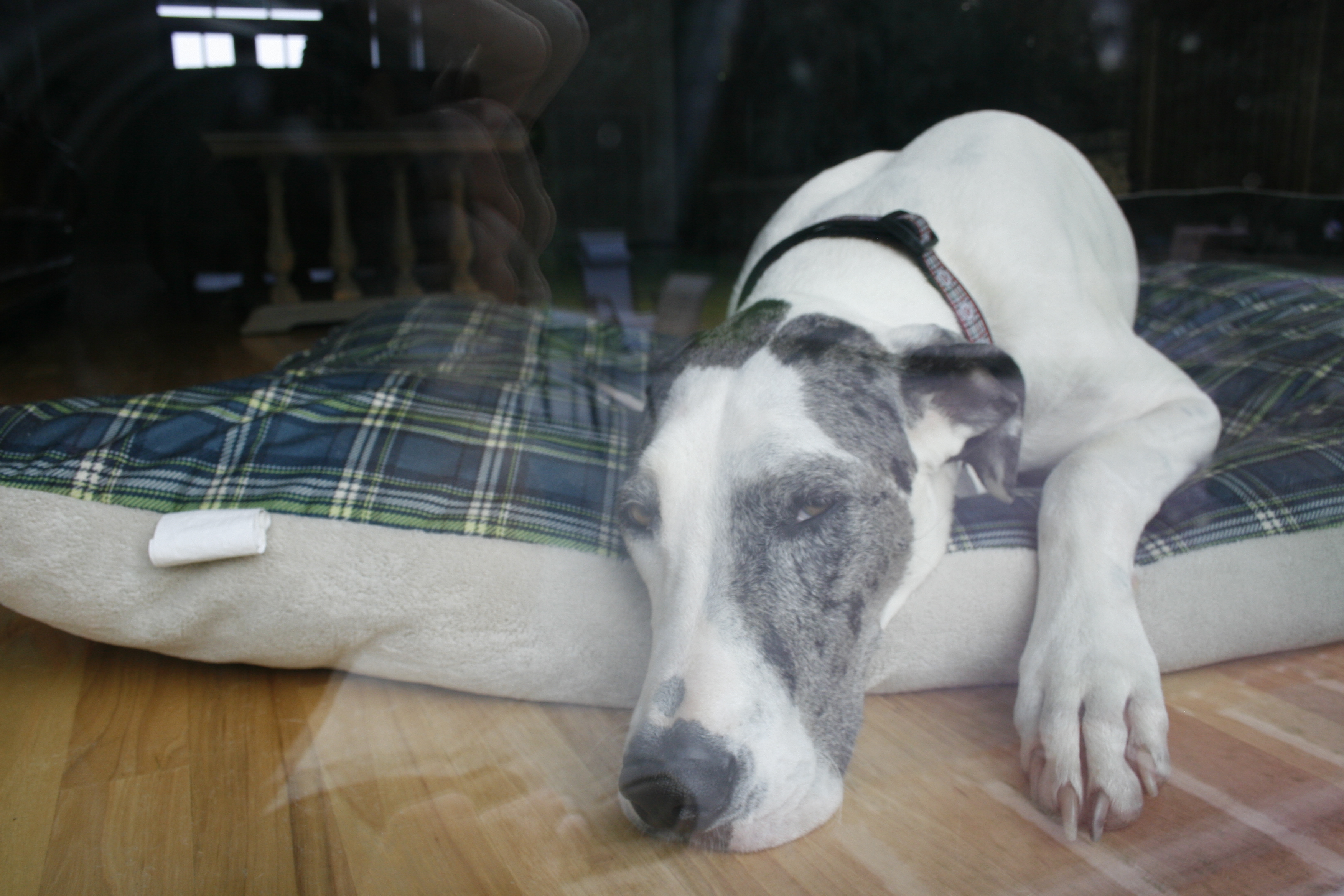 You may be asking yourself where has the beloved Great Dane been these last few months.  I know I have been away from my computer but I had some “issues”.  Really, I had one issue…Happy Tail Syndrome.  Basically, I wagged my tail too fast and too hard.  It became a weapon of mass destruction, especially to itself.  Dr. Edwards had to take about 6 inches off of the tail because of tissue and nerve damage (don’t worry, I still have plenty to wag).  Mom and Dad got to stay home with me for a whole 7 weeks.  They complained about not being able to leave the house, but I ignored the whining.  I had fun.  They baked me homemade treats, took me hiking and all kinds of fun stuff.  Good news is my tail is all healed.  It’s thicker on the end so I won’t hurt it again.